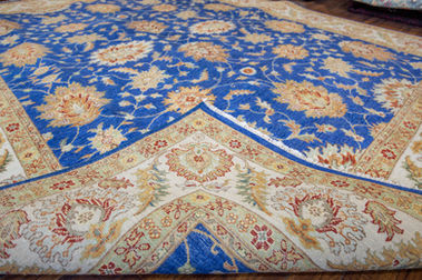 If something is spilled on your rug, the best thing to do is to absorb as much as possible with kitchen-paper or cloths, and then use a sponge to gently apply very dilute dish-soap in the direction of the pile (not scrubbing back-and-forth). If this does not work, don't panic and don't resort to stronger chemicals. Simply bring it to us within two weeks and we will clean it professionally. We also recommend doing this every 2-3 years depending on use.