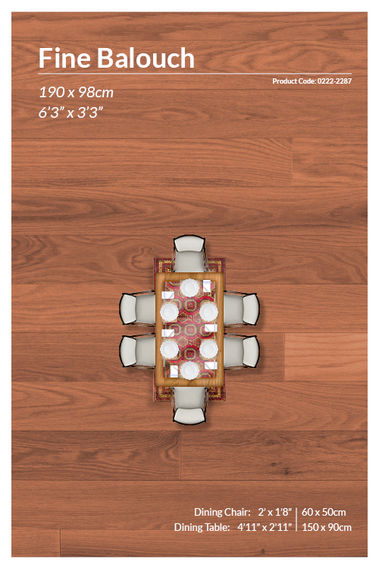 This Persian Fine Baluch Rug, sized 190 x 98 cm, is a striking example of traditional craftsmanship, showcasing a rich palette of deep red, earthy browns, and golden-yellow accents. The central field is adorned with a repetitive geometric gul motif, a hallmark of Baluch rug designs, intricately woven with precision. These motifs are framed by smaller angular patterns, giving the rug a sense of structure and symmetry. The borders feature layered bands of intricate designs, including meandering vine patterns and stylised geometric shapes in gold and black. These create a vivid contrast to the vibrant red background. The meticulous detailing in the borders enhances the overall appearance, making the rug both captivating and balanced. Crafted by hand using hand-spun wool and naturally dyed with traditional methods, this flat-woven piece embodies the authentic charm of Baluch rugs. Its bold design and vibrant colours make it an excellent choice for adding warmth and character to various interior spaces.Baluch Rugs have a rich history rooted in the nomadic and semi-nomadic tribes of the Baluch people, primarily located in the border regions of Iran, Afghanistan, and Pakistan. These rugs are often crafted by tribespeople who continue traditional weaving techniques passed down through generations, producing pieces that are as much an art form as they are functional. Baluch rugs are known for their distinctive colour palette, typically featuring dark reds, deep blues, and earth tones, with geometric and tribal patterns that reflect the culture and landscape of the Baluch people. Many designs incorporate motifs symbolising nature, protection, and tribal identity, including stylised trees, animals, and geometric shapes. Historically, these rugs were woven for practical purposes, serving as floor coverings, saddle bags, and even tent hangings suited to the mobile lifestyle of the Baloch tribes. The rugs are crafted using high-quality wool, often dyed with natural materials, resulting in rich colours that age beautifully over time. Traditional Baluch rugs were smaller due to the constraints of a nomadic lifestyle, but they are made in various sizes today. They are appreciated worldwide for their unique beauty, durability, and cultural significance.