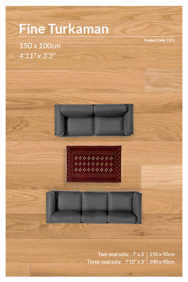 This Ultra Fine Turkmen Yomut Design Rug, measuring 150 x 100 cm, is a stunning example of traditional Turkmen craftsmanship. This hand-made rug is woven from fine-quality hand-spun wool and dyed using natural colours, showcasing the intricate artistry and cultural heritage of the Yomut tribe. The central field features a deep, rich red background adorned with a grid-like pattern of geometric medallions in ivory and navy blue. These medallions, each framed with intricate details, create a sense of symmetry and order typical of Yomut designs. The precise arrangement of motifs adds to the visual depth and complexity of the rug. The borders are equally elaborate, with multiple bands featuring repeating hooked designs, diamond shapes, and smaller geometric elements in complementary shades of red, ivory, navy, and dark green. These borders serve to frame the central design, enhancing the overall aesthetic and balance of the rug. The combination of bold colours, geometric precision, and fine craftsmanship makes this rug a versatile and timeless piece, ideal for adding a touch of cultural elegance to any interior space. It reflects the skill and tradition of Turkmen rug-making, renowned for its durability and artistic beauty.Turkmen rugs are distinctive handmade carpets originating from the nomadic tribes of Turkmenistan, northern Iran, and Afghanistan. They are a celebrated hallmark of Central Asian weaving traditions, with a history dating back hundreds of years. They were traditionally created by nomadic Turkmen tribes such as the Tekke, Ersari, Salor, and Yomut, who were skilled in creating intricate, durable textiles for both practical and decorative purposes. Turkman rugs are characterised by their repetitive geometric motifs known as guls. Each tribe has its own signature gul patterns, making these rugs highly symbolic and unique. The patterns often tell stories of the tribe’s history, culture, and identity. The rugs typically feature a warm colour palette dominated by deep reds, rich browns, and earthy tones, accented by lighter hues like ivory, blue, or green. The natural dyes from plants, minerals, and insects ensure lasting vibrancy. Known for their fine knots and compact weaving, Turkman rugs are renowned for their durability and the precision of their designs. They are typically woven using hand-spun wool, ensuring a soft texture and exceptional quality. Originally, Turkman rugs were woven for domestic use, serving as floor coverings, blankets, or wall hangings in nomadic tents called yurts. Turkmen rugs remain a testament to the rich cultural heritage of the Turkmen people.